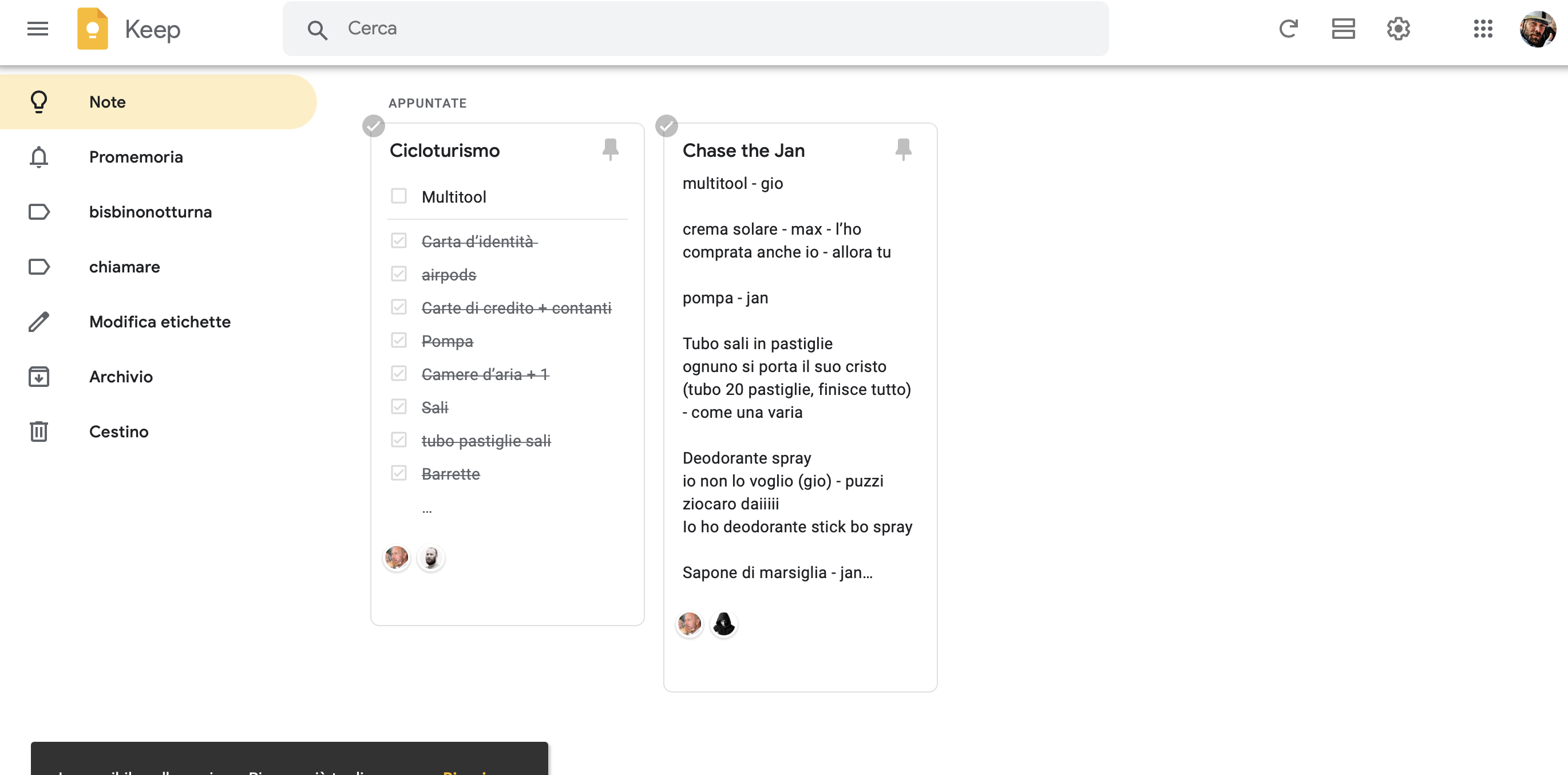 Immediatamente stilo la lista su google keep di quello che dovremo condividere: dentifricio, multitool, pompa. Il deodorante no, quello non serve.