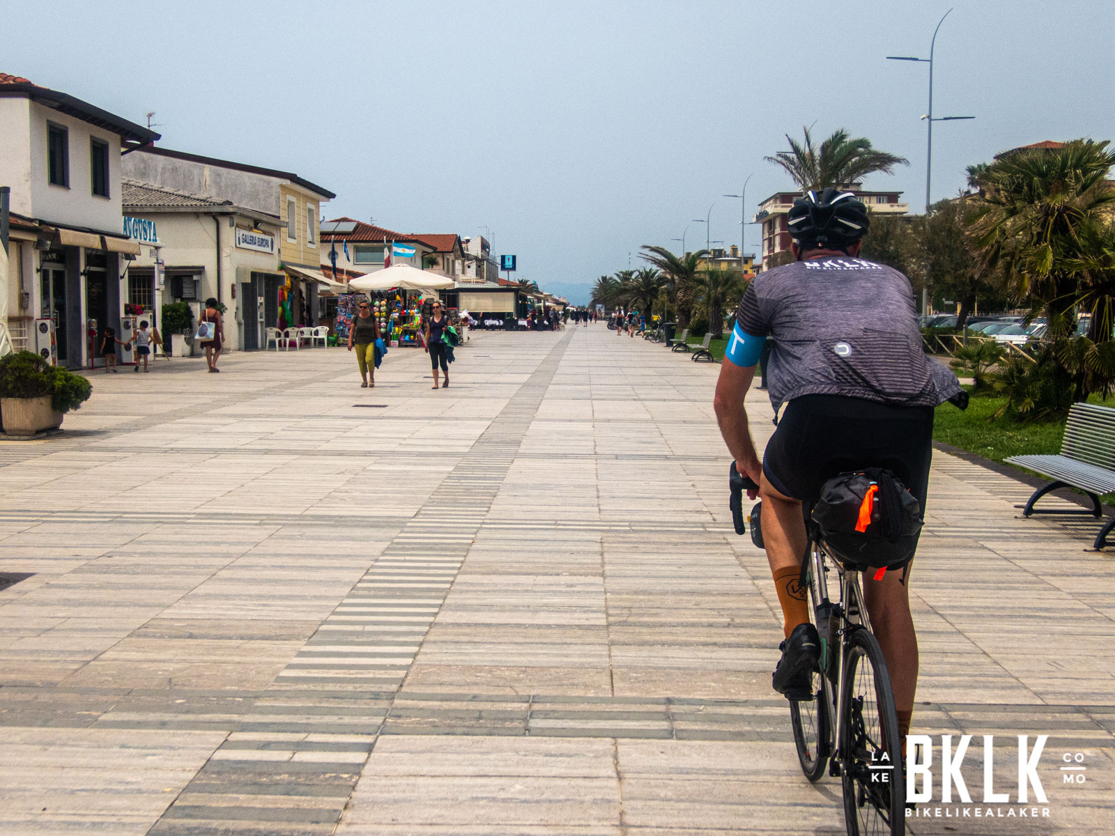 Passiamo la prima ora tra la digestione del bacon, che ha già compensato le 6.500 calorie spese il giorno prima, le mezze ciclabili, le statali nelle quali i gitanti della domenica la fanno da padrone e lungomare affollati. Pranziamo a Marina di Pietrasanta: un gelato, due coche, un estathe, 4 mezze naturali. La sensazione di disidratazione sarà una compagna costante dei 4 giorni: fontanelle come miraggi!