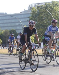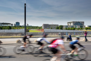 E qui sorge la prima riflessione: una volta tolte le macchine dalle strade, non è per niente scontato che pedalare nella natura sia più bello che pedalare in una città d’arte; per quanto adori le montagne, una volta ogni tanto pedalare tra la cupola del Reichstagg progettata da Sir Norman Foster e l’Hauptbanhoff (o, se pensassimo alla London Prudential, tra il Big Ben e Buckingham Palace) può essere altrettanto bello che pedalare sulle Dolomiti o nel paesaggio di tante granfondo anonime a cui ho partecipato (senza far nomi per non offendere nessuno). D’altra parte basta pensare al Tour de France: le immagini del circuito degli Champs Elysée non sono certo meno belle di quelle di tante tappe di montagna.