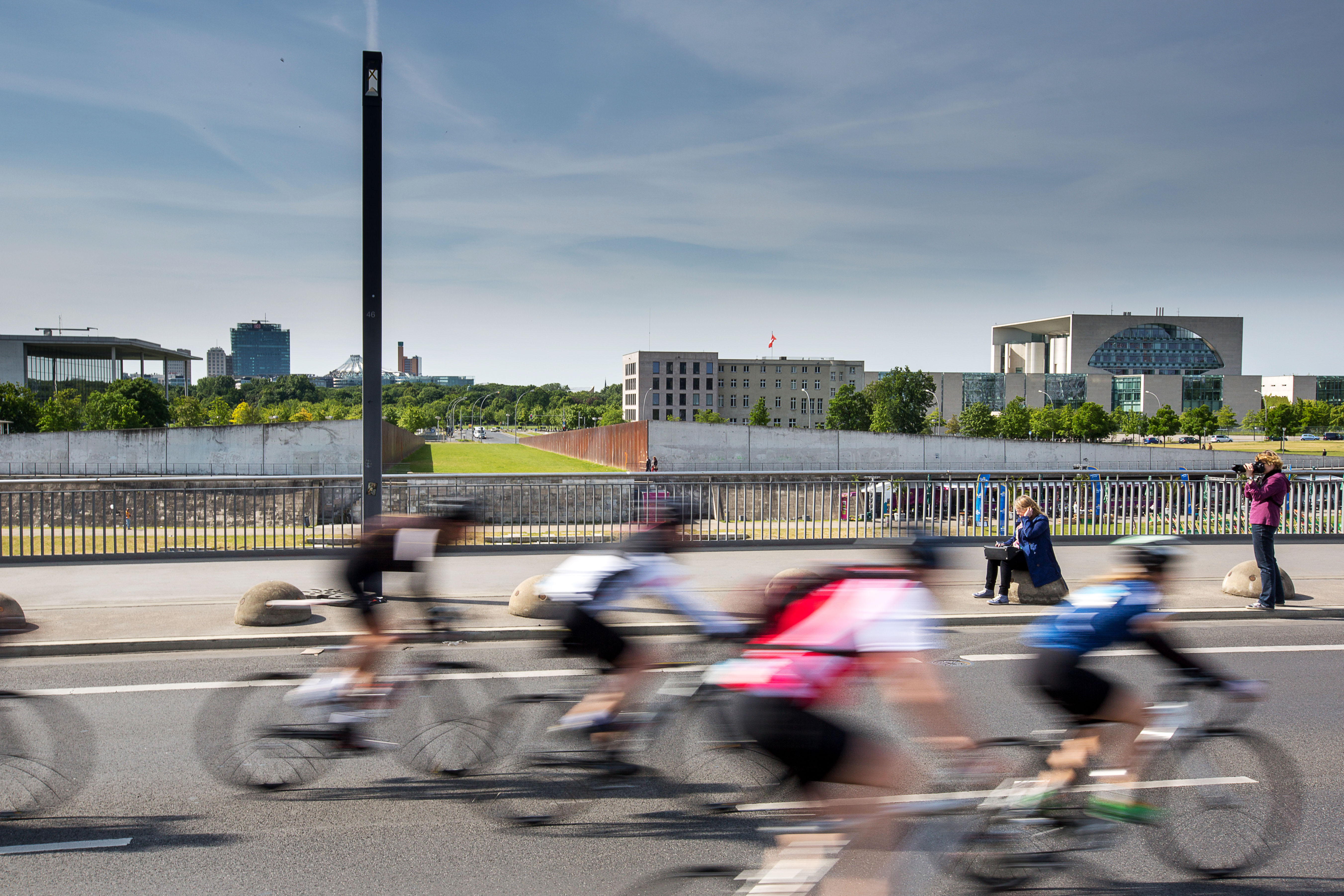 Prendiamo il passaggio in aeroporto, ad esempio: per quanto il Tempelhof fosse all’epoca un aeroporto all’avanguardia e sia tuttora un bell’esempio di architettura anni ’20, non è che una pedalata sulla pista di decollo sia oggettivamente bella. Eppure, essere in bici dove è fuori dal mondo che ci sia una bici è molto emozionante, così come lo è pedalare da padroni sulla strada sotto la ferrovia sopraelevata, davanti ai monumenti più famosi di Berlino o in luoghi che fanno parte della nostra storia, come il muro di Berlino.