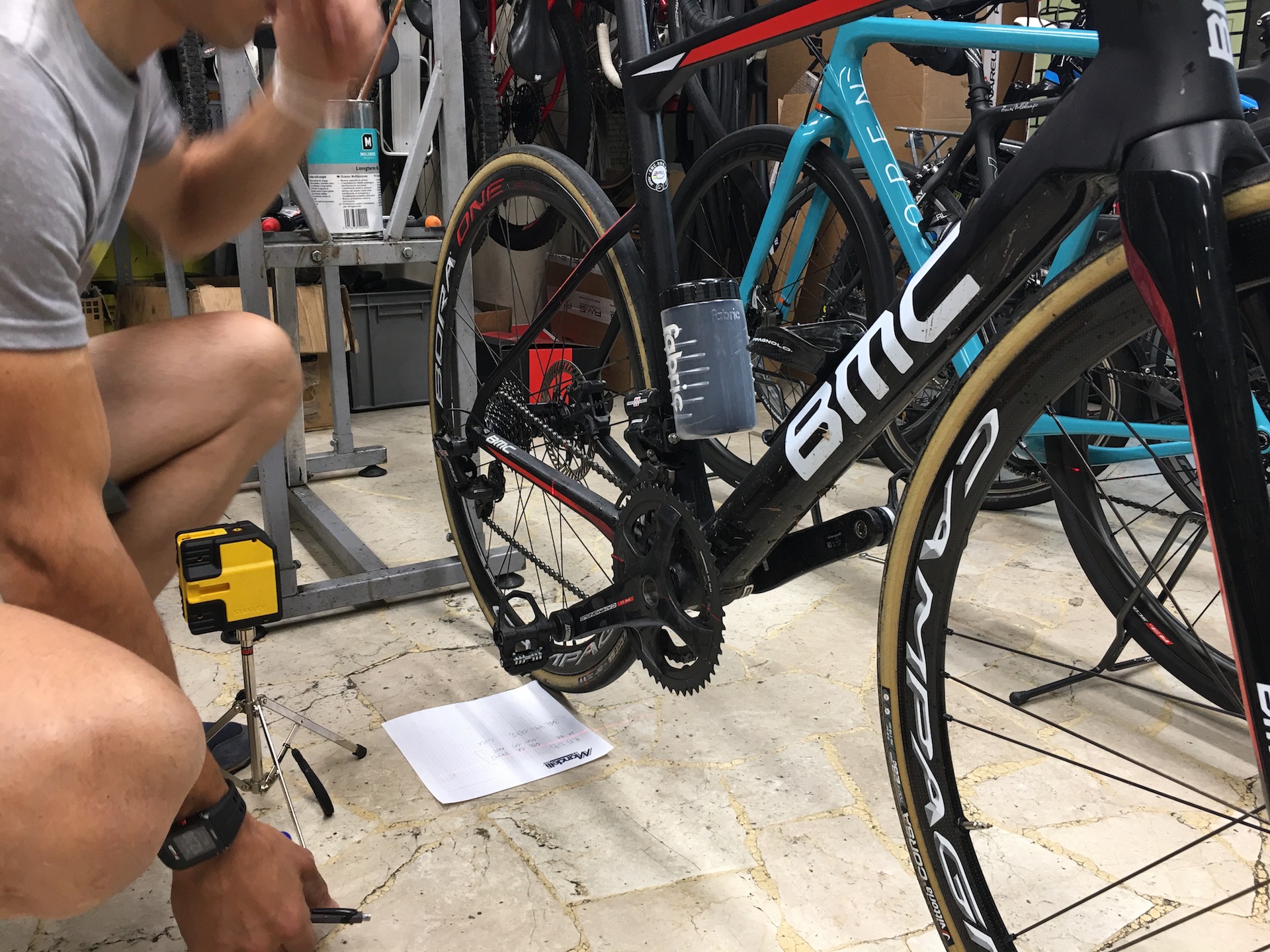 Il sistema IdMatch che usa il Ferca prevede di pedalare su un simulatore, senza sensori, che mappa il movimento e in automatico corregge gli angoli, muovendoti mentre pedali. Nelle 2 ore circa che dura tutto il test, arriveremo a trovare la posizione, ma lasciamo per ultimo l’aspetto più importante, la cui gestione è molto manuale. Marcello vede che le tacchette attuali hanno dei segni interni, il che lo porta a supporre che tendo e tento sempre di allargare il piede più di quanto i gradi delle tacchette mi permetterebbero, quindi pedalo in posizione forzata. “Si va beh, seghe mentali”. “Te le giro di pochissimo, vedrai: mi raccomando poi, prima uscita con calma in pianura”.