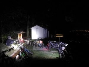 Ad esempio nel silenzio della notte, nel buio che modifica la percezione di tutto quello che c’è intorno, nel piacere di pedalare chiacchierando con vecchi e nuovi compagni di pedalata, nella speranza mista a paura di incontrare gli animali del bosco ed ovviamente nei panorami meravigliosi sul nostro lago.