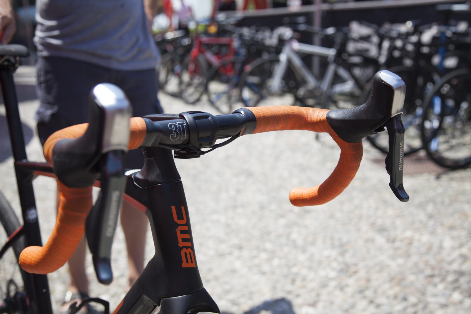A margine del test, dove la faranno provare nella versione verde-dura ace elettronico, nero-ultegra elettronico, BMC allestisce un esposizione con tutte le varianti modello/gruppo/colori,e personalmente assegno il primo posto, in fatto di colorazioni, alla top di gamma verde ed alla versione bianca con ultegra meccanico, il cui aspetto estetico è però funestato dalla presenza dei fili esterni. E’ talmente bello non vedere niente che un solo filo che esce dal manubrio rovina la visione d’insieme.