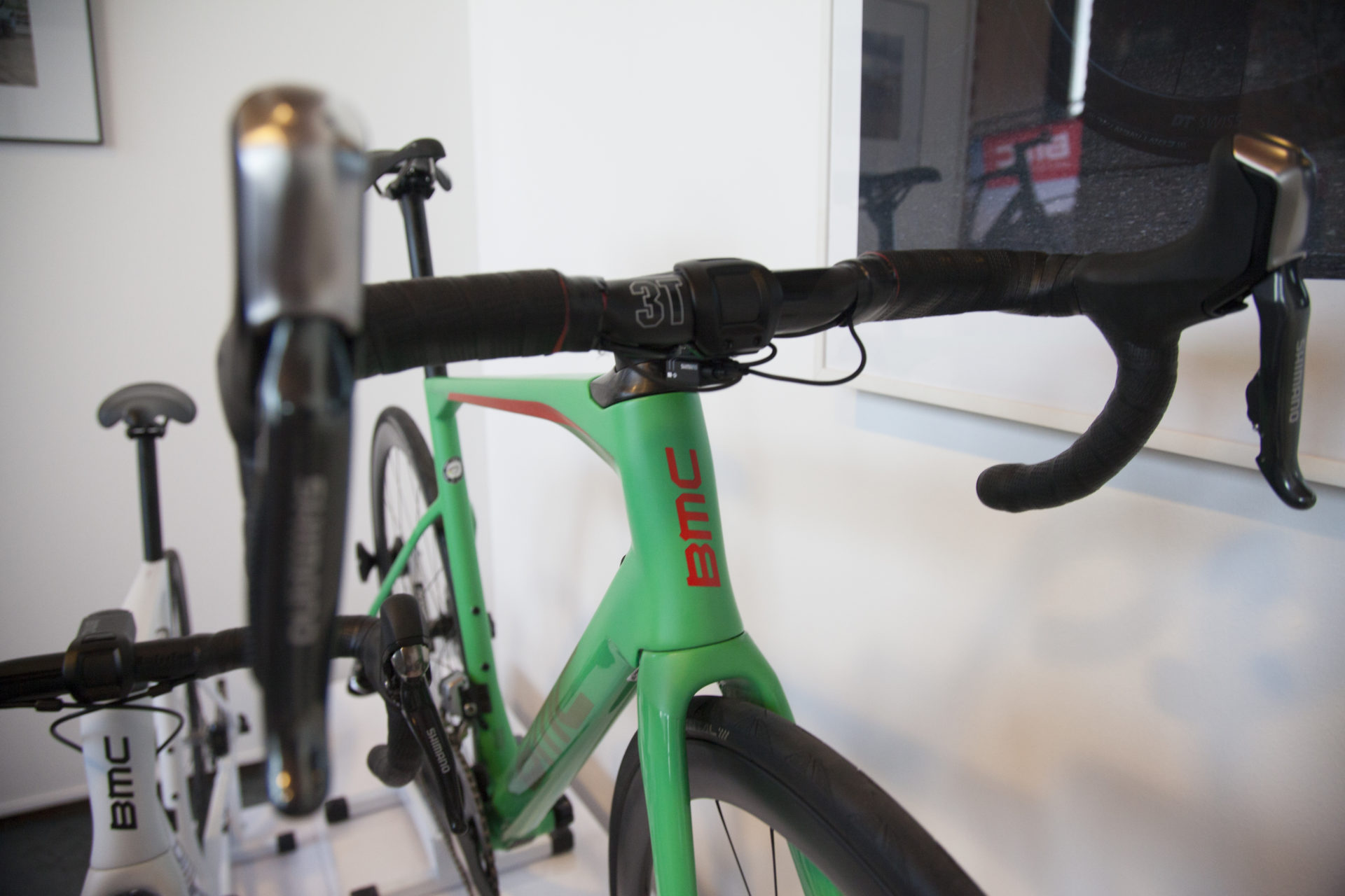 Bella da impazzire. La prima cosa che pensi appena vedi la nuova arrivata BMC, nonostante la scelta apparentemente discutibile del colore (verde sparato) per un bici da 10.000 €, è che è una bici talmente bella che gli manchi qualche pezzo.