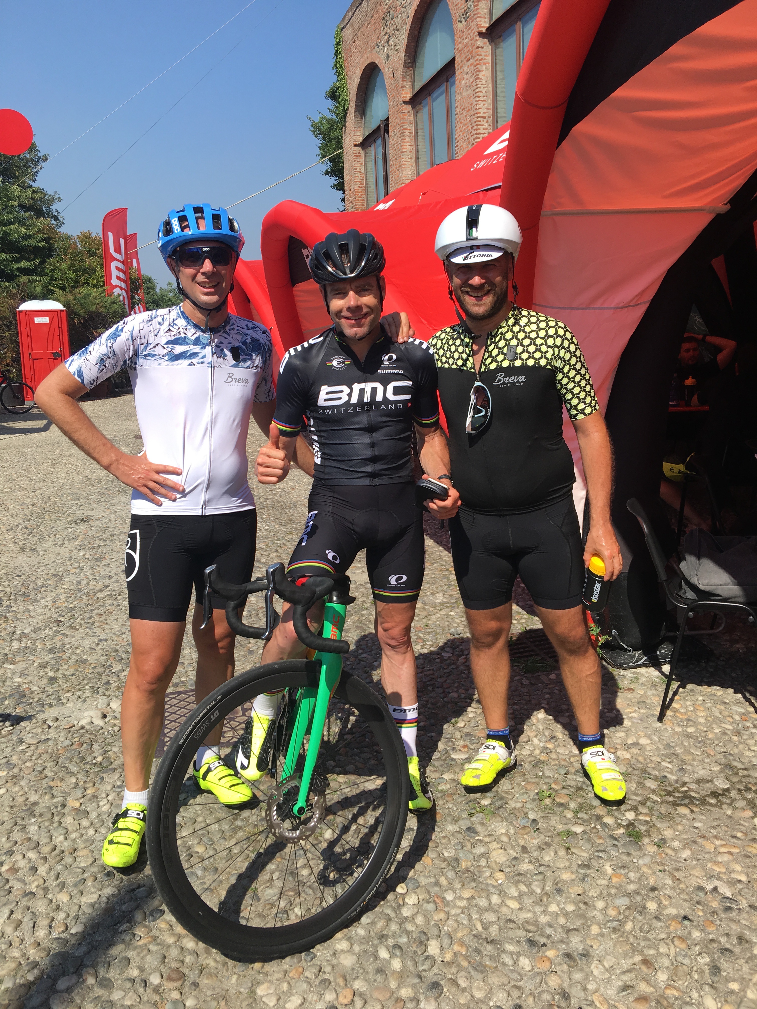 Aspettiamo l’arrivo di Cadel Evans, che sarà la nostra guida, e sistemiamo la nostra posizione in sella, che solo sul primo strappo mi accorgerò aver sbagliato di qualche millimetro.