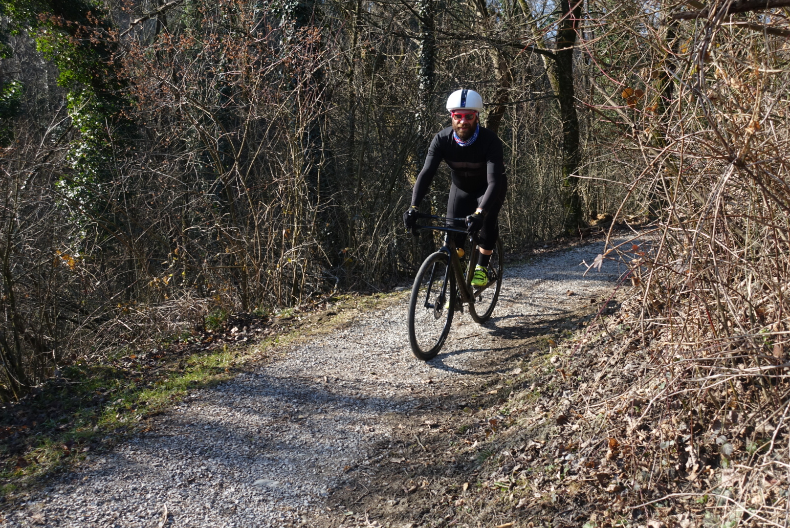 Sfanghiamo subito il tema manubrio a due livelli. Le sensazioni non sono quelle che si provano con una bici ammortizzata, ma al contempo non sono nemmeno quelle che ho provato con la Inflite andando in fuori strada. Una bici (la Inflite) che ha un manubrio tradizionale per intenderci, ma costruita per battere sterrati e andare in fuori strada. La prima controprova con il manubrio della Grail l’ho avuta quando su un ciottolato ho iniziato a spingere: con le mani appoggiate sul piano superiore spariscono le vibrazioni intense e ci si può rilassare, senza avere la sensazione che il cervello (o quello che ne è rimasto) si stia per staccare.