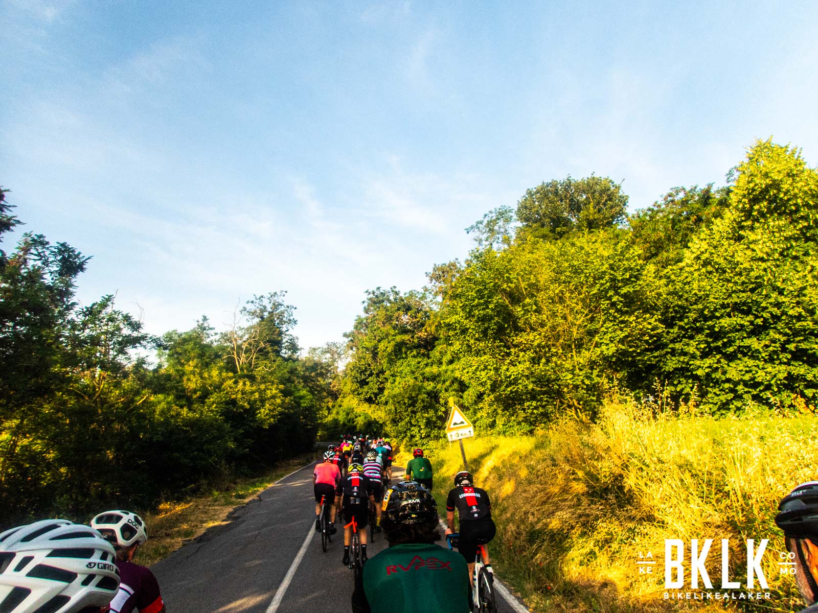 Discesa bellissima tra le colline e prossimo obiettivo di giornata il Colle di Calci con quella che sembra l’unica vera salita impegnativa con 600m di dislivello e un 7% medio dopo 220Km, di certo non banale.