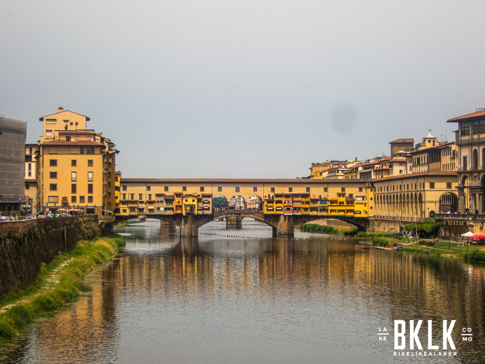 Ripartiamo verso Firenze e dopo pochi km la BMC inizia di nuovo a farsi sentire “cric croc, cric croc”. Gian torna a non esserci più. Entriamo nella culla del Rinascimento accolti dal benvenuto dei fiorentini: “ah imbescille!” doppietta per Gio che risponde a tono come solo i laghéé sanno fare. Di fronte al Ponte Vecchio ci fermiamo per una granita rinfrescante: il caldo inizia a essere insopportabile. Siamo già a 3 litri di acqua e non sono ancora le 11.