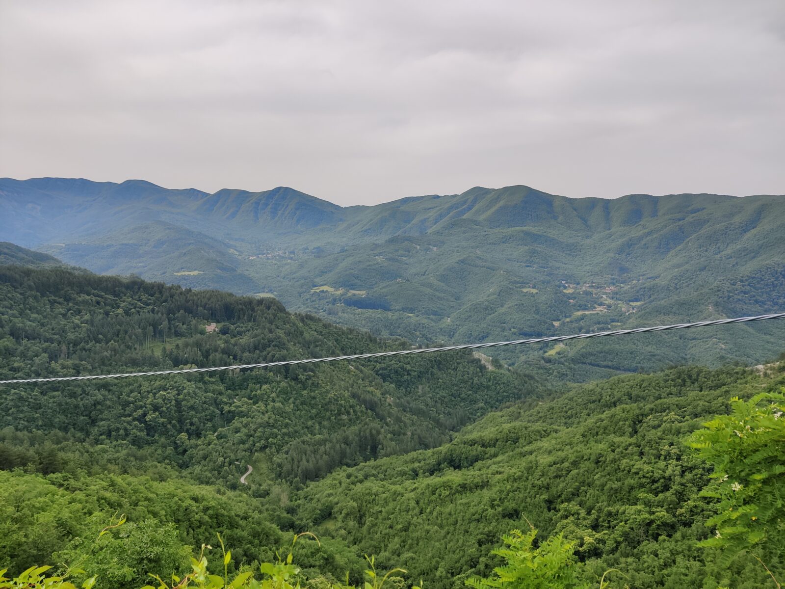 Nel frattempo, arriviamo sulla Cima Coppi a 900m con una salita godibilissima al 4% medio: il valico Tre Faggi. Cambia la vegetazione e anche la temperatura si abbassa, tutto perfetto. Lasciamo indietro Filippa per goderci la sensazione inebriante di spingere, sentendo le ruote che scorrono leggere su una pendenza per nulla impossibile. Bellissima. Scherzo con Ernesto di Vittoria sulle mie Tubolito (camera d’aria in TPU, un elastomero termoplastico resistente ma costoso, che ho installato per fermare le mie continue forature) e mi prendo un richiamo formale: carbonio caldo e Tubolito combinazione pericolosa. Invece mi porteranno a casa senza un tentennamento, frenando su discese a 70Km/h, pinzando a fondo su strade piene di buche, restando sempre gonfie per tutti i 4 giorni. Maipiùsenza.