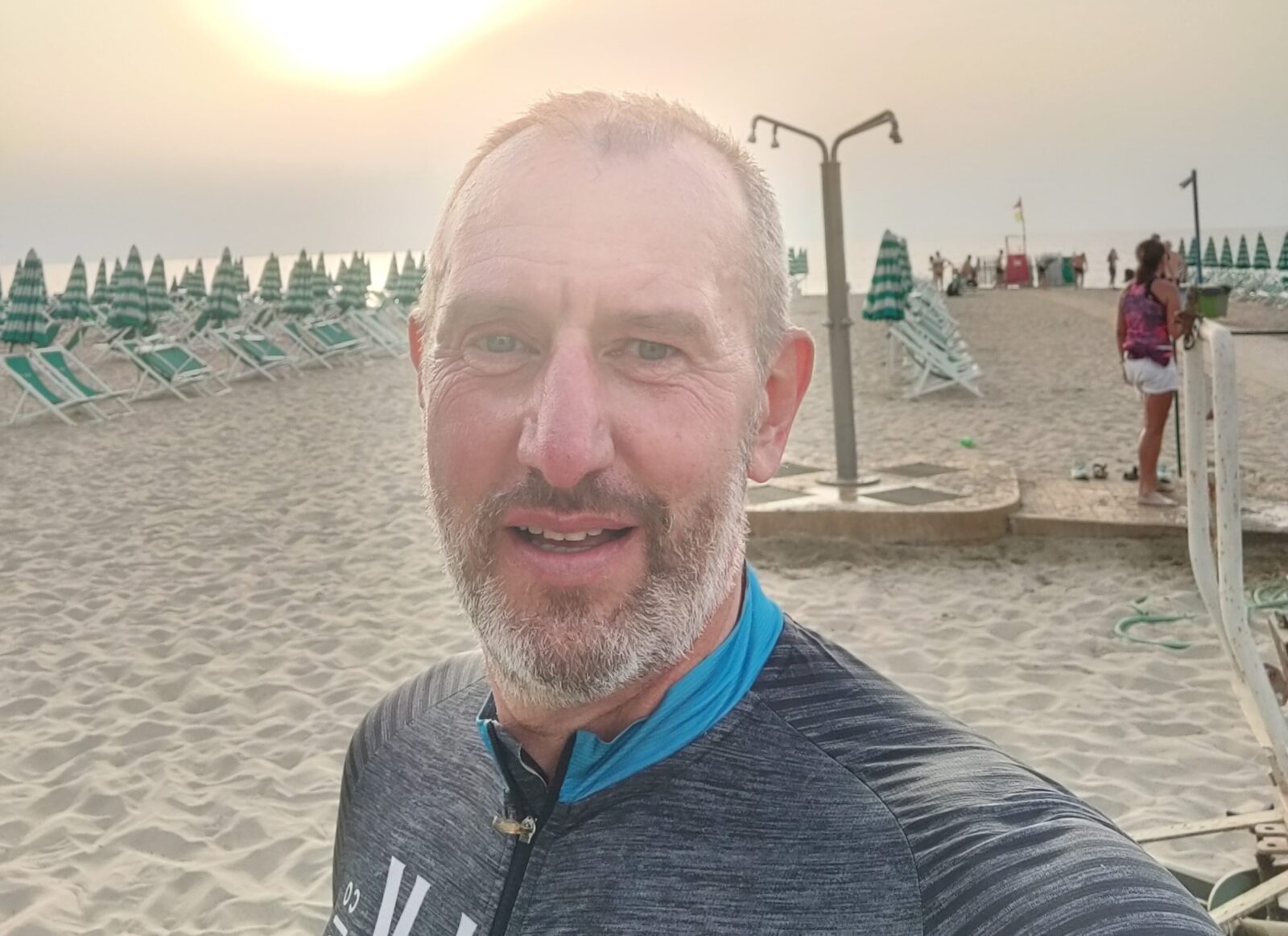 Finalmente arriviamo al bagno Siria accolti da un gruppo di ragazze che ci ricevono con lo stesso entusiasmo del responsabile di un ufficio reclami. Esco il costume che ho portato da Cesenatico tentando un ciuffo, ma mi fermo alla linea del costume, l’acqua torbida e il pensiero di uscire con il fresco della serata mi inibisce, non così Gio: ciuffo is for men, puccio is for boys. Ci prepariamo per la cena organizzata per noi finisher, dove rimaniamo finalmente colpiti per la qualità e quantità del cibo, con un gran fritto misto finale che riporta anche per questa volta in negativo le calorie bruciate.
