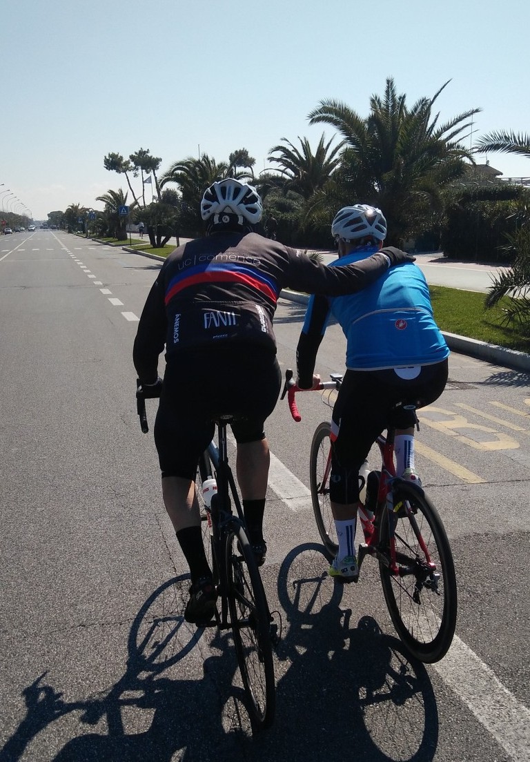 Pensa che solo qualche settimana fa ho fatto il mio PR su quella salita che ci piaceva da matti: “senti il sole sulla schiena, che spettacolo!”. Eccome se lo sentivo. Mi dicevi di non andare così veloce perché poi sarebbe stata dura, ma io non lo sapevo, non capivo, erano le mie prime vere salite. Ogni volta che ci ripasso lo dico a chi mi sta al fianco: qui ho messo giù il piede per la prima volta, con Paolone. Quello strappo al 15% dove tu salivi zigzagando, mentre io ho mollato e sono sceso. Ma poi siamo arrivati in cima e tu come al solito hai attaccato bottone, con la signora alla finestra. Stare con te significava, conoscere tutti quelli che ci circondavano, perché non ti trattenevi nel regalare la tua gioia di vivere.