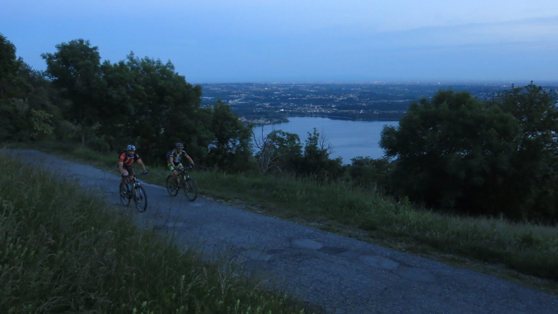 La differenza rispetto alla pedalata diurna è infatti anche nell’aria fresca e nei profumi della sera, nel silenzio assoluto (quando non ci sono, ti rendi conto che anche gli escursionisti che normalmente salgono a piedi al Cornizzolo rovinano l’atmosfera) e nello spirito da zingarata dei partecipanti.