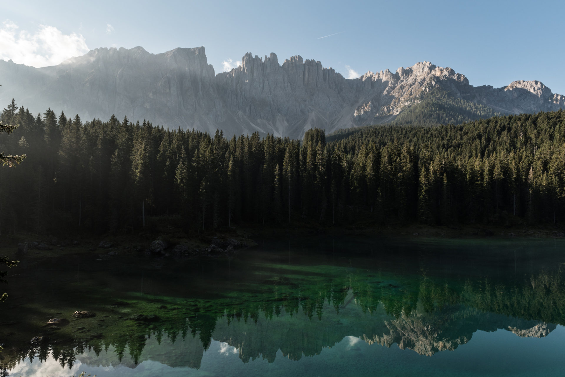 In pratica arrivi alla partenza con il pensiero di aver fatto una cazzata madornale a lasciare la poltrona dell’ufficio in questo bel venerdì lavorativo per venire qui e invece ti ritrovi prima al Lago di Carezza, poi sul Passo Nigra a pedalare tranquillo a 25 – 30 km/h con il Latemar alla tua sinistra ed il Catinaccio alla tua destra. Poi, va be’, arriva il Sella e li non c’è neanche da parlarne, il Gruppo del Sella lì davanti ed il Sassolungo un po’ più sulla destra, due dei massicci più belli del mondo e uno scenario impagabile, e ti chiedi se il pazzo ero io a venire qui o chi se ne sta comodo sul divano e se lo perde (mia moglie sia avvisata, le sono grato di avermi lasciato venire a pedalare anche questa volta, ma è troppo bello, l’anno prossimo non si discute, viene anche lei con una bici elettrica e il Sella lo facciamo assieme, queste gioie non se le può perdere, se no che educazione può dare alla bimba?).