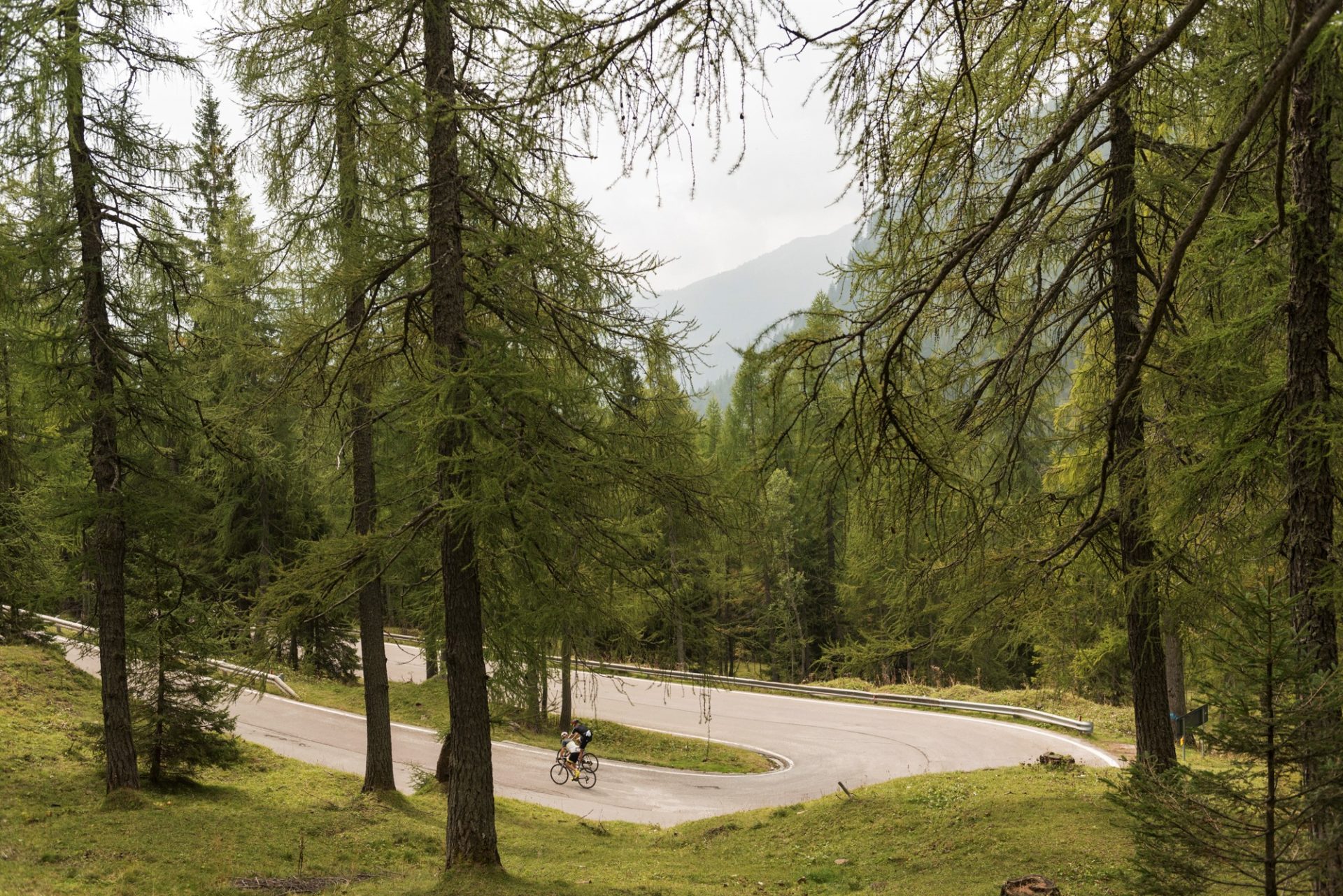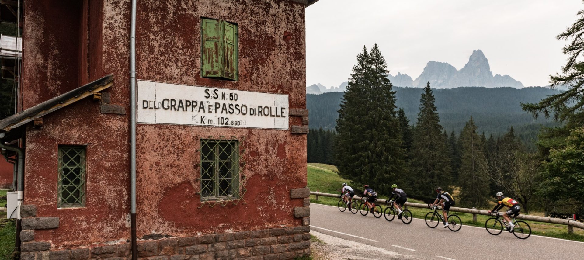 Peccato solo che il clima oggi fosse mezzo nuvoloso e che la nuvoletta di Fantozzi si sia piazzata proprio sulle Pale di San Martino, trasformando la prima parte di quella che poteva essere una meravigliosa salita comoda al 5-6% fisso con una delle montagne più belle in faccia (praticamente come essere al cinema, salvo il fatto che sei seduto sul sellino della bici) in una salita qualunque; neanche la nuvoletta ci ha però rovinato il Valles e l’ultima parte del Rolle, sempre bello regolare nel bosco e con la chicca impagabile di un km di pura pianura vista montagne a 2.000 mt., quando mancavano solo 15 mt. per lo scollinamento.