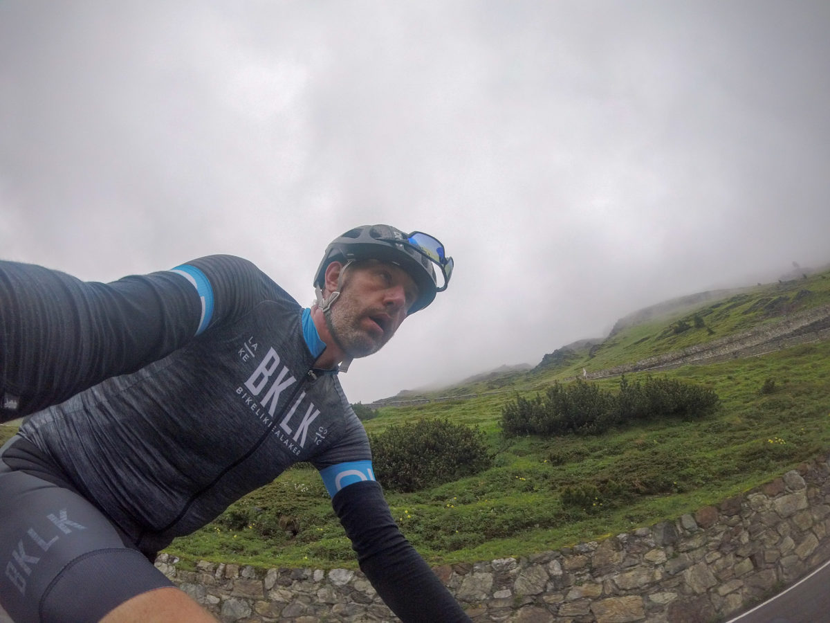 “Meglio lo Stelvio da Bormio” la seconda fissa di giornata. Dimentica lo sforzo, la pendenza, la difficoltà. Ma la bellezza della valle del Braulio non ha paragoni. Vero è che oggi non si vedeva una mazza, ma alzare gli occhi dal lato di Prato non mi ha convinto. Sarà stata la stanchezza? Può darsi.