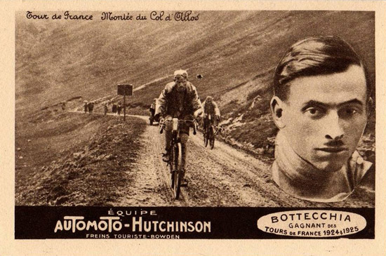 Entro certi limiti la cronaca dettagliata di quei tour e di quelle tappe ci da effettivamente l’idea di cosa fosse e di quanto diverso da oggi fosse il ciclismo dell’epoca: tappe anche di oltre 500 km (che significa, tra le altre cose, che la tappa della domenica partiva sabato sera verso le 20:00 e che anche per le tappe più corte – 300 km! – si partiva di notte e si pedalava per ore con il buio), salite su cui si andava più veloce a piedi che in bici, forature continue, un “codice etico” non scritto secondo cui attaccare l’avversario che forava era assolutamente normale e quindi per sopravvivere era necessario cambiare le ruote il più velocemente possibile (a proposito, sapete quanto ci metteva Bottecchia a cambiare un tubolare? 1 minuto e mezzo!), la ricerca di fabbri nei paesi per riparare eventuali danni al telaio, l’assalto alle osterie per trovare da mangiare o ripararsi in caso di maltempo, il rischio di sbagliare strada agli incroci e la condivisione della strada con le macchine (e con i tifosi in macchina).