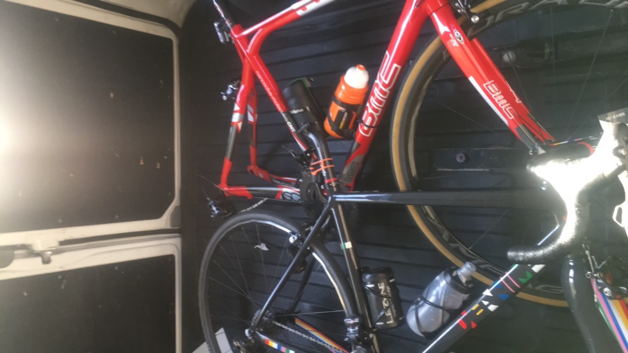 Da qui comincia la mia giornata infinita: 5 ore e 30 minuti su un Ducato, che prima raccoglie un inglese che ha rotto la sella e poi sarà più intelligente di me, tornando a casa in treno da Asso. Poi un’altro inglese, imbestialito perchè Rapha Travel si è persa un pezzo e non gli ha procurato la bici, e su quella di fortuna che ha trovato gli si è rotta la catena.