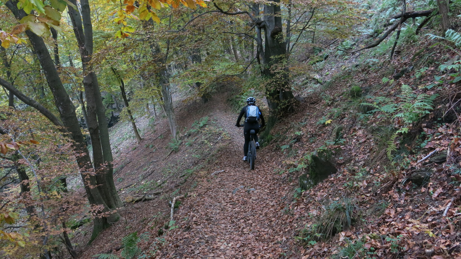 Tra l’altro, per i ciclisti abituali è anche difficile valutare le difficoltà per i neofiti; ad esempio il sentiero dei faggi, che nei miei ricordi era un meraviglioso taboga su un letto di foglie morte, potrebbe essere un incubo per le mogli al seguito.