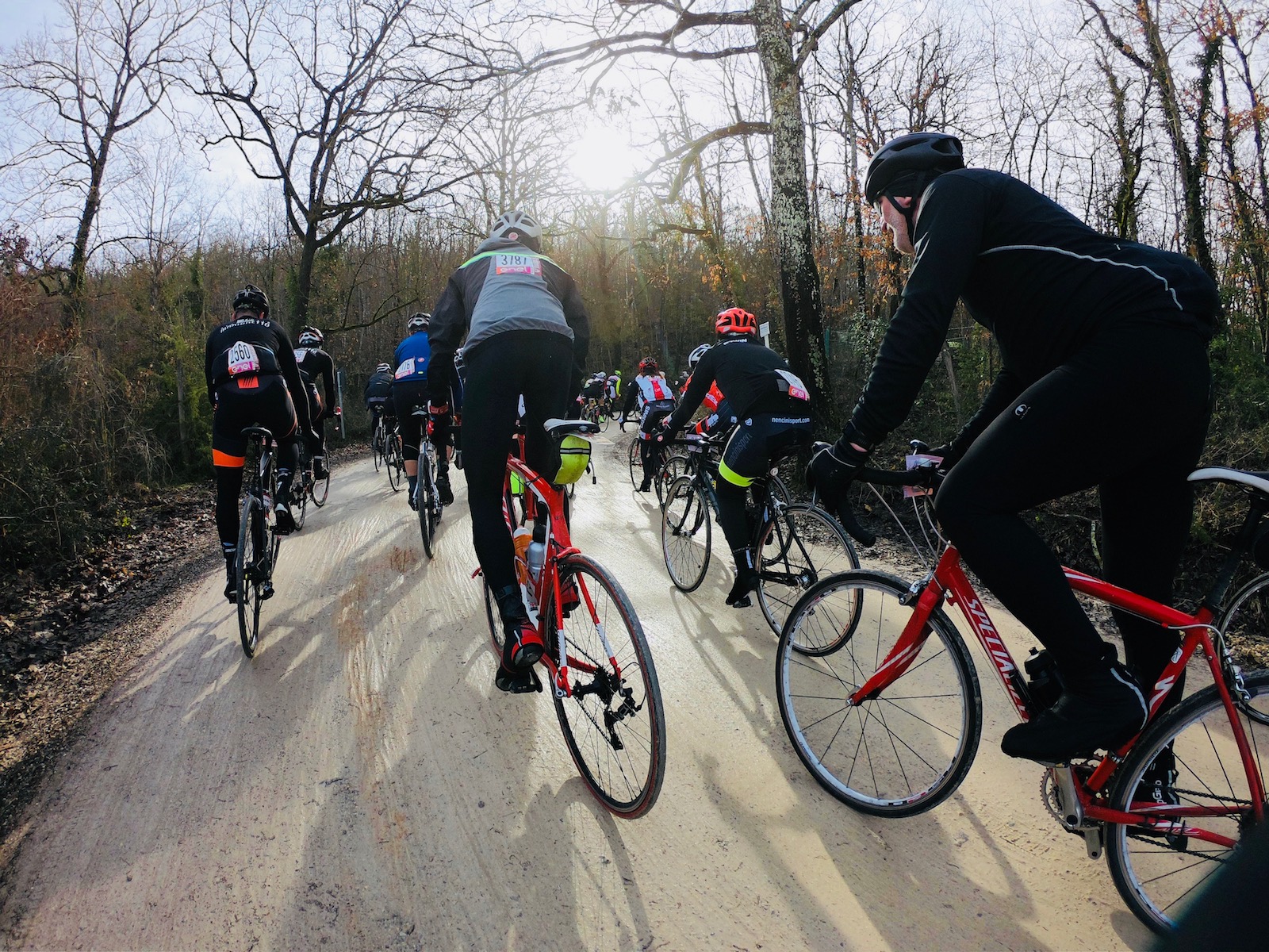 Il primo settore è dopo 20 km e l’attesa su asfalto è inutile come le meline nei tempi supplementari in attesa dei calci di rigore. Il primo giro di ruota su terra è un misto tra il terrore di trovare fango e la voglia di sporcarsi per poter ostentare una foto da eroe come quella dei prof. La delusione nel capire che non ci si sporcherà è mitigata dalla consapevolezza che non sarà una giornata infernale. Dura ma gestibile. Non infernale.