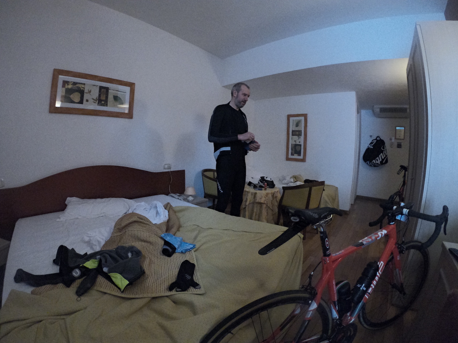 Il weekend inizia dove avrebbe anche potuto finire: salumi, ragù di cinghiale, rosso sfuso e cantucci col vin santo. Caffè. Ammazzacaffè. Trovato un senso alla trasferta a prescindere, possiamo andare a lavorare sui dettagli: ritiriamo il pacco gara con l’agilità che aveva difettato alla prima edizione, andiamo in Hotel a scaricare la macchina. Appaltata la scelta del soggiorno a Max, sogno un viale di cipressi a portarmi verso un suggestivo agriturismo vista colli: mai mi ritrovai così vicino ad una rotonda autostradale, con ridente vista su un Roadhouse. Che dico, tu puoi aprire un Roadhouse in Toscana? E’ come voler vendere dei gratta e vinci a Las Vegas, della camomilla ad Amsterdam.