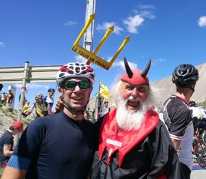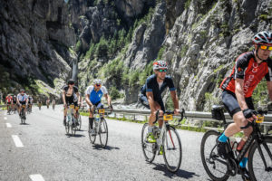Dici a un francese Etape du TOUR, cioè la replica per cicloamatori di una delle tappe più belle del Tour, lui sente quella parolina magica e corre in garage a prendere la bici per fare la stessa tappa che fanno i pro (ben 15.000 iscritti, da una settantina di nazioni, e ben 11.200 finishers); chi non ha in garage neppure una Motobecane del 1982, partecipa come può: gli abitanti dei paesini paralizzati dal blocco del traffico ricambiano l’onore del passaggio della corsa creando muri di gente lungo le strade e suonando qualsiasi oggetto rumoroso per incitare i ciclisti, ai pensionati locali non par vero di abbandonare i cantieri stradali e una volta tanto tirar sera criticando i ciclisti invece dei muratori, chi si è dovuto fare 5 km a piedi per andare a comprare il pane approfitta della strada del ritorno per sventolare le sue baguette come bandiere, qualche contadino sposta il sistema di irrigazione dei suoi campi per annaffiare i ciclisti, Didì il Diablo sulle ultime rampe dell’Izoard prepara anche per noi la stessa accoglienza data a tutti i campioni da Chiappucci in poi ed ovviamente chi ha un camper carica la nonna ed aspetta i ciclisti a bordo strada facendo la hola, che fa pure bene alla salute della nonna, e svuotando bottiglie nel coppino dei ciclisti barcollanti in salita.
