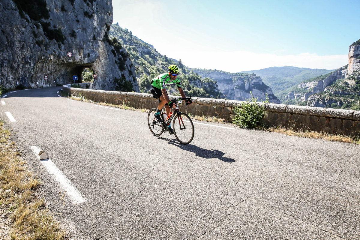 Nella prima parte attraversiamo dei caratteristici villaggi francesi con casette di pietra, scatto qualche foto e mi godo la temperatura, oltre che la facilità con cui pedalo su salite che non hanno nulla di epico, arrivano al massimo a un 8% di pendenza. La prima vera montagna del giorno è appunto l’Uomo Morto. Sulla carta una media del 4% per 13Km, e così sarà. Una lunga cavalcata in cui lascio andare le gambe tenendo sotto controllo il cardio, che se no rischio il fuori giri, soprattutto in queste condizioni in cui mi sento bene e la pendenza non rende pesanti gli oltre 80Kg che sono costretto a portare in cima.
