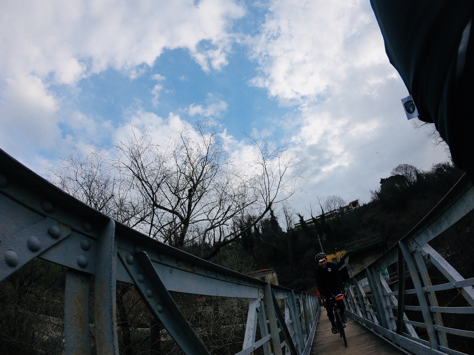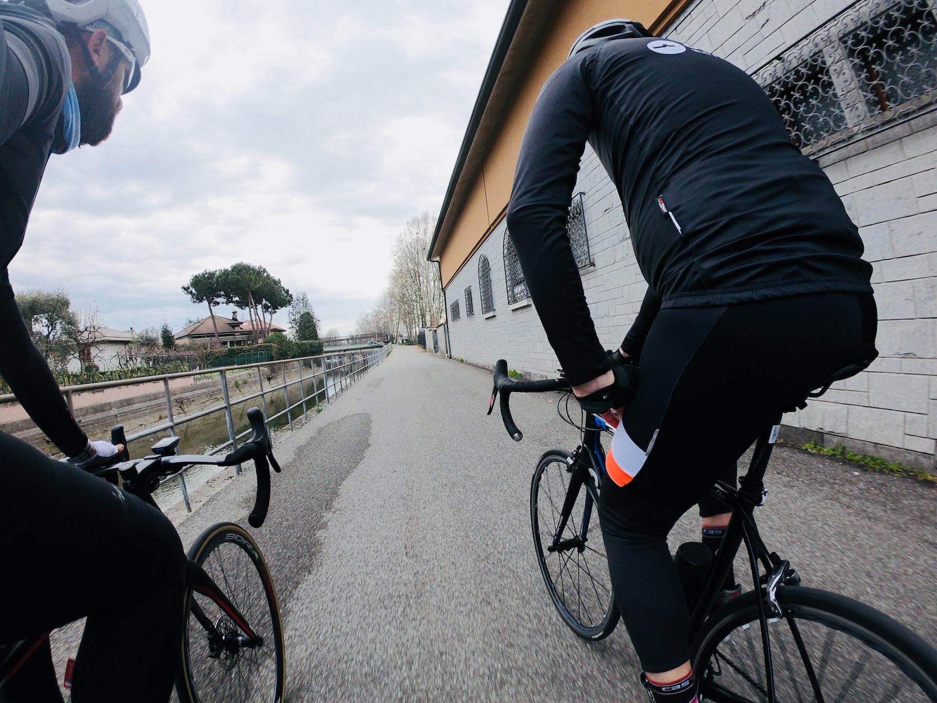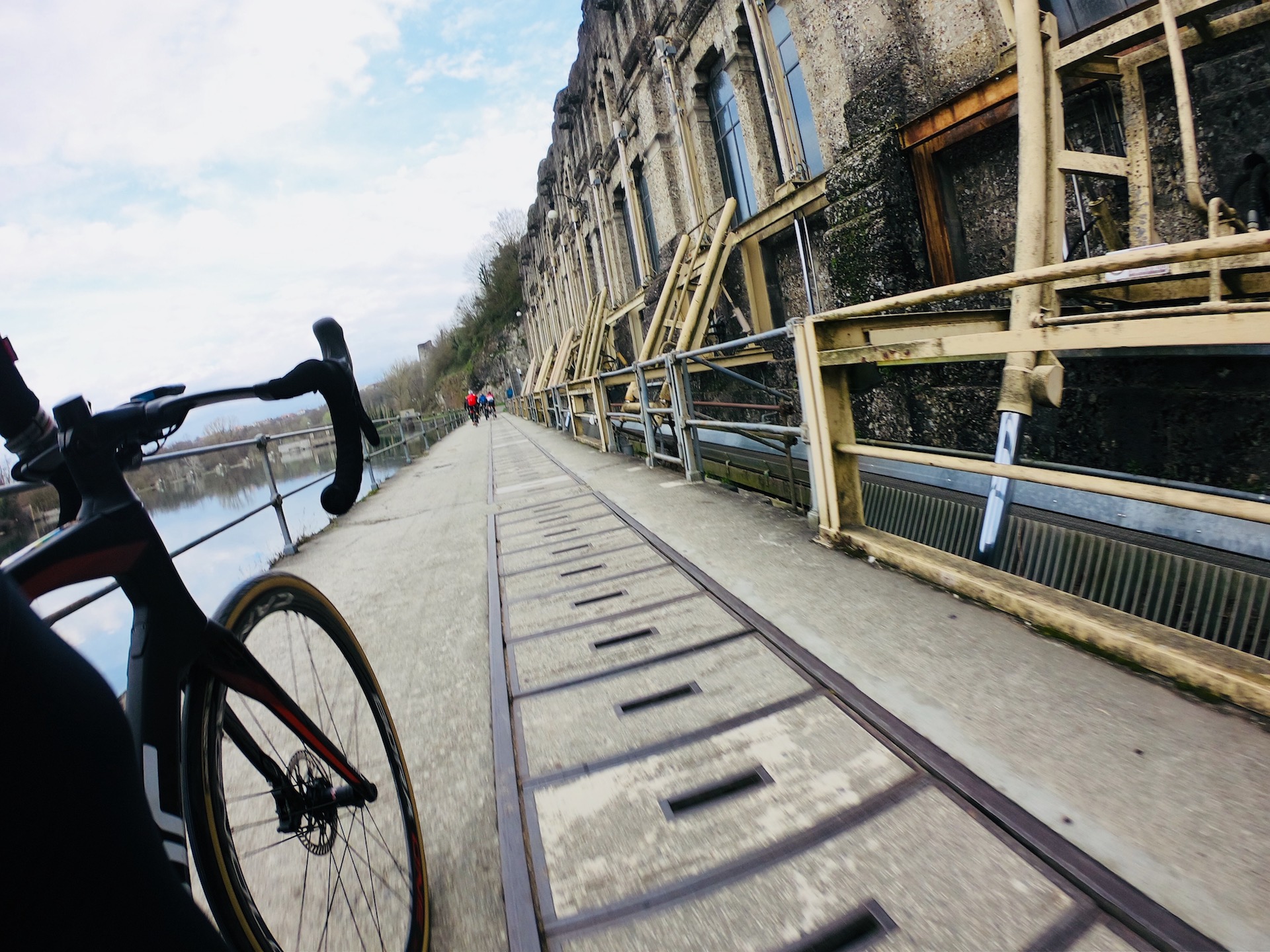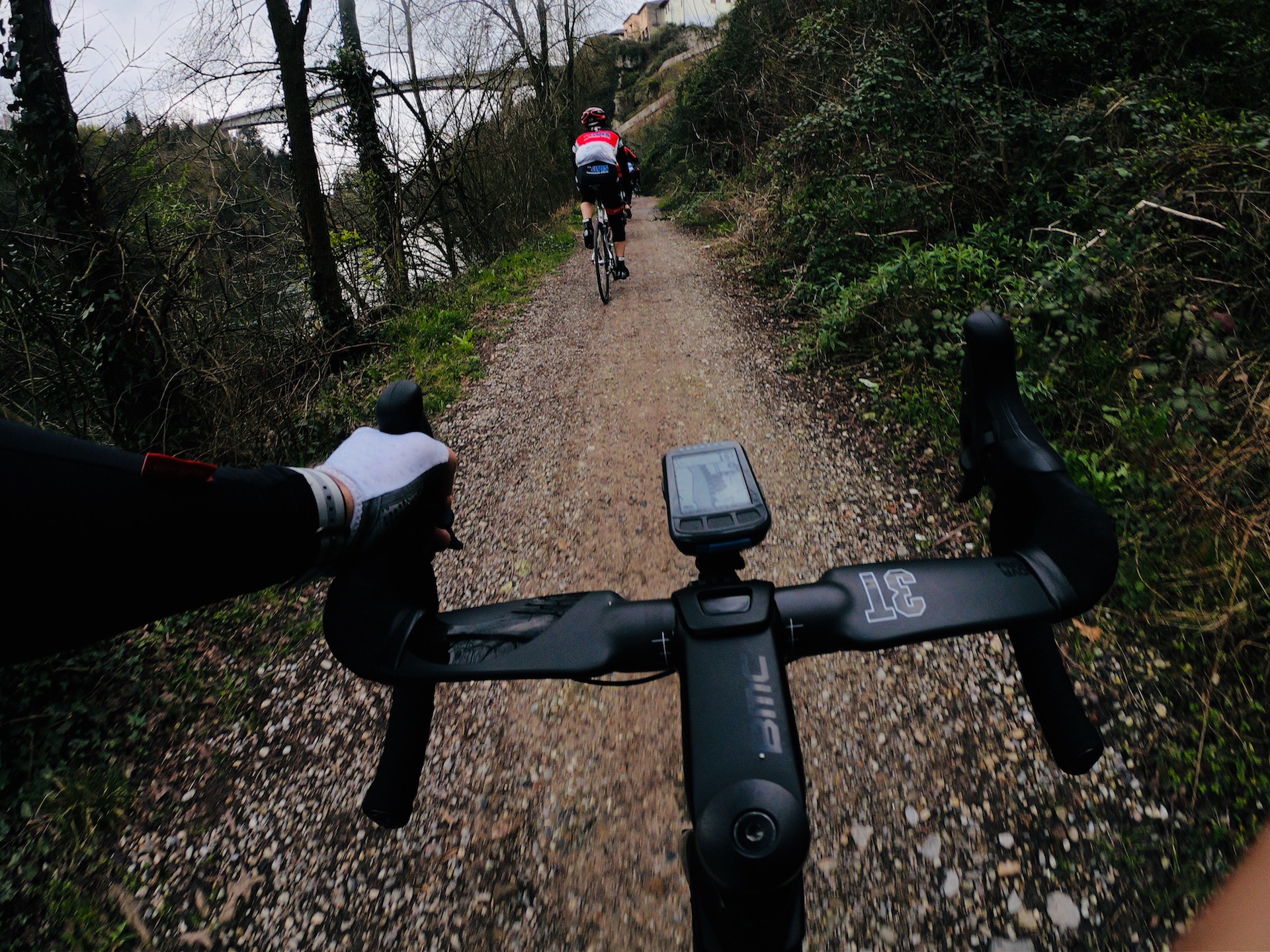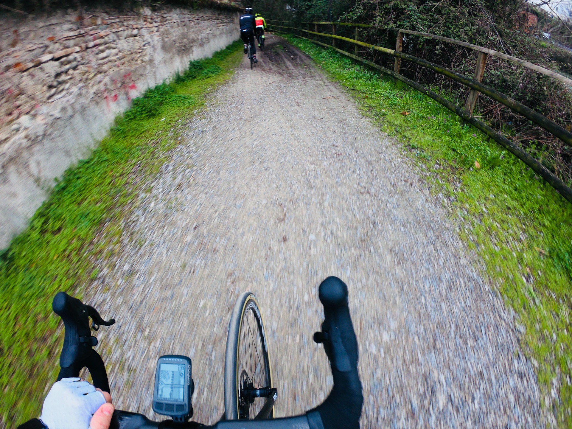 Si parte, un pò alla cazzo, un pò da soli, seguendo la traccia GPX sapientemente caricata sul mio Wahoo in 2 click alla facciazza di Garmin Connect. Io che non sono della zona capisco subito di essere proiettato in un universo parallelo, tra malinconici lungofiume che hanno vissuto momenti migliori, ma che col grigino di giornata trovano la perfetta cornice per una pedalata che nemmeno ci prova a pretendere di essere competitiva.