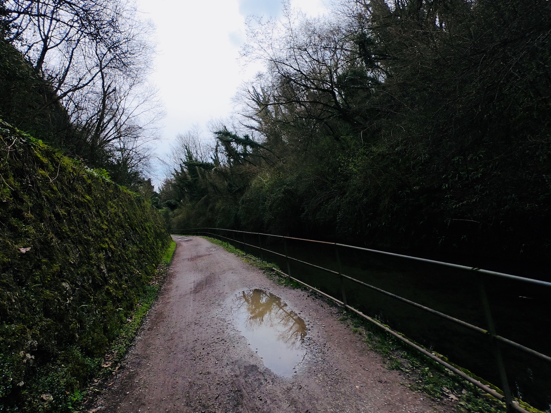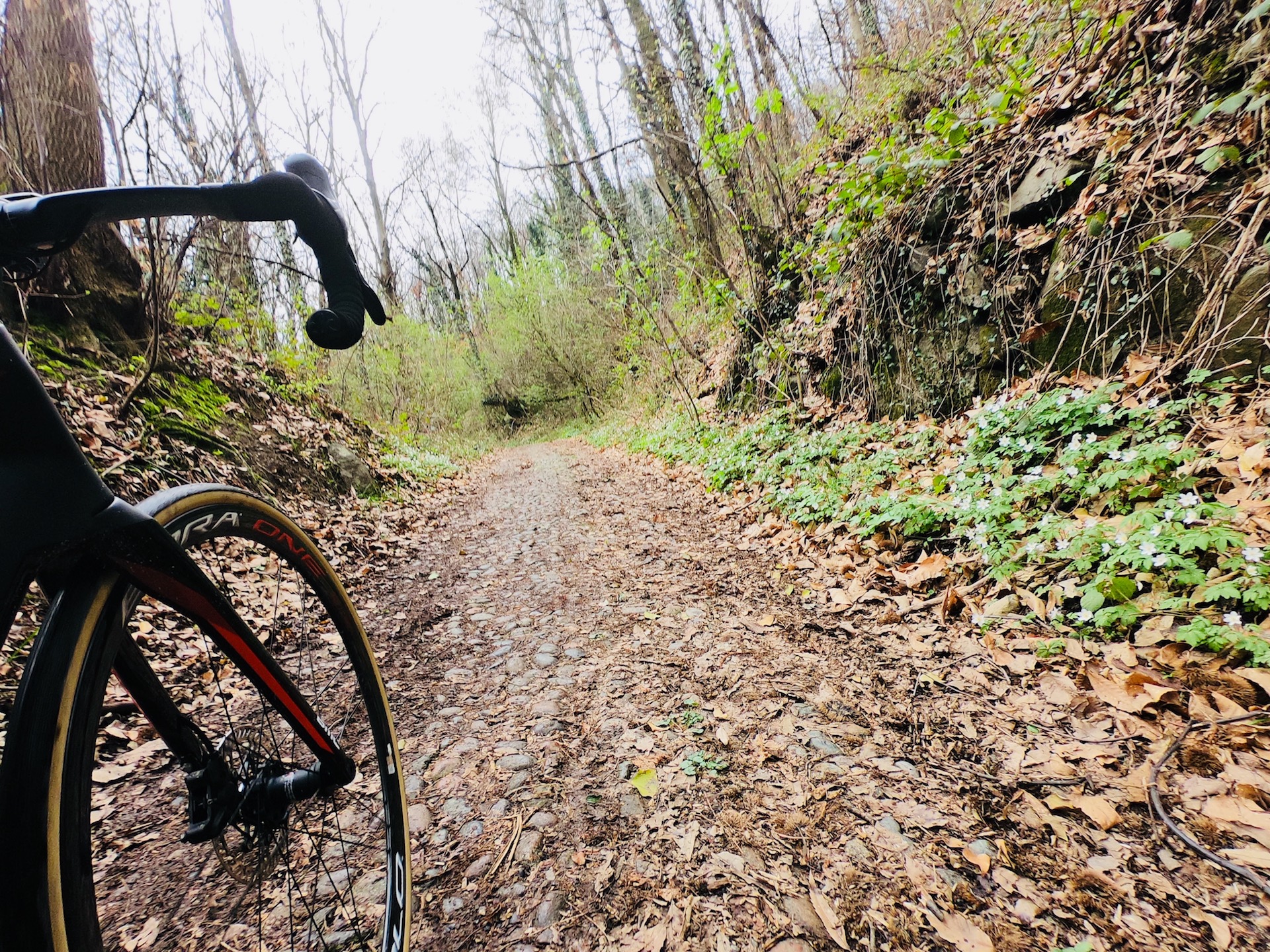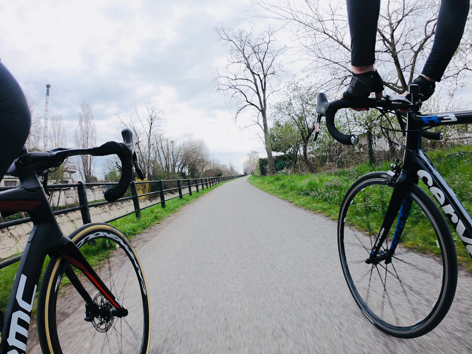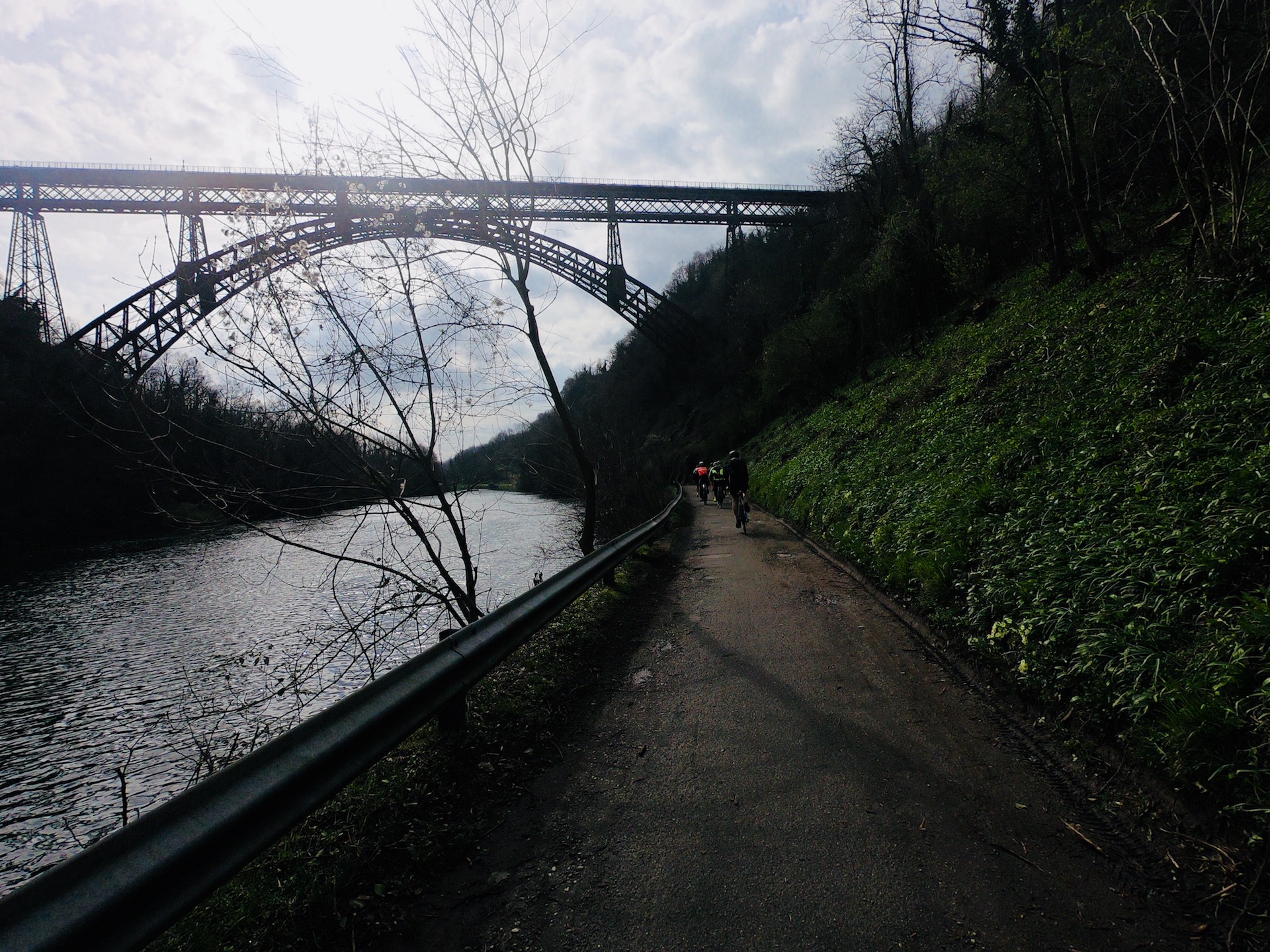 Si parte, un pò alla cazzo, un pò da soli, seguendo la traccia GPX sapientemente caricata sul mio Wahoo in 2 click alla facciazza di Garmin Connect. Io che non sono della zona capisco subito di essere proiettato in un universo parallelo, tra malinconici lungofiume che hanno vissuto momenti migliori, ma che col grigino di giornata trovano la perfetta cornice per una pedalata che nemmeno ci prova a pretendere di essere competitiva.