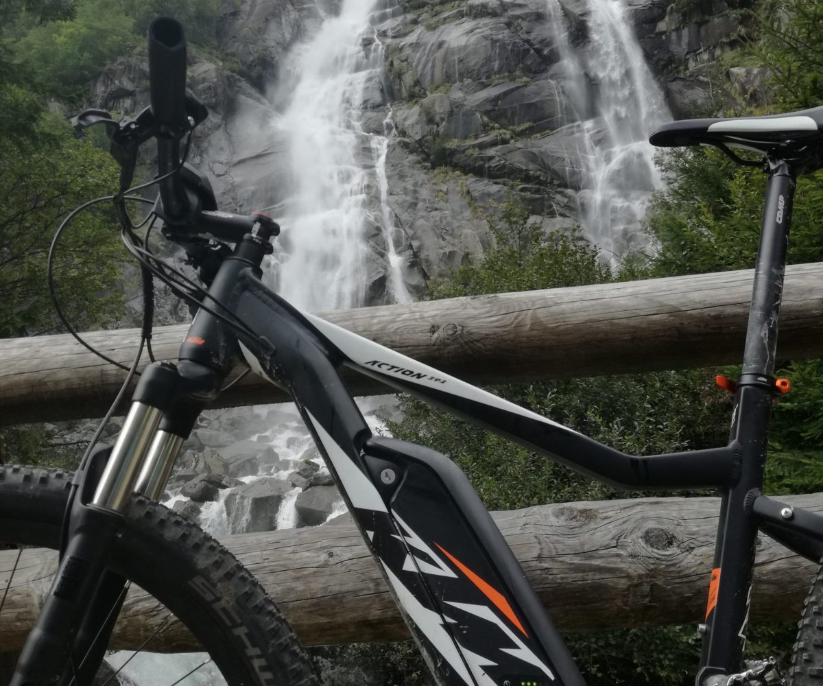 Abbiamo noleggiato tre KTM e-MTB front prezzo di listino €2.600, noleggio giornaliero €35 da Nardis Sport, una bicicletta a pedalata assistita con motore Bosch in grado di percorrere anche 100Km secondo il gentilissimo noleggiatore, con cui però mi è parso di capire il cliente tipo del negozio non si spinge su percorsi accidentati e in sentieri impervi, cosa che io invece cercavo, per cogliere le peculiarità del mezzo e provarne i benefici.