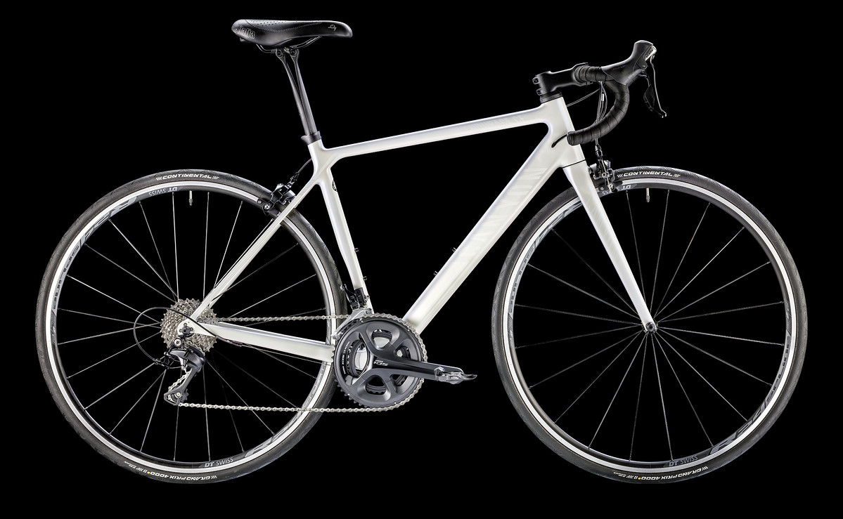 Per la precisione una Canyon Endurace WMN CF 8.0, telaio in carbonio montato con Shimano 105 e ruote in alluminio a basso profilo, circa 8,2 kg con pedali, portaborracce e computerino montati.