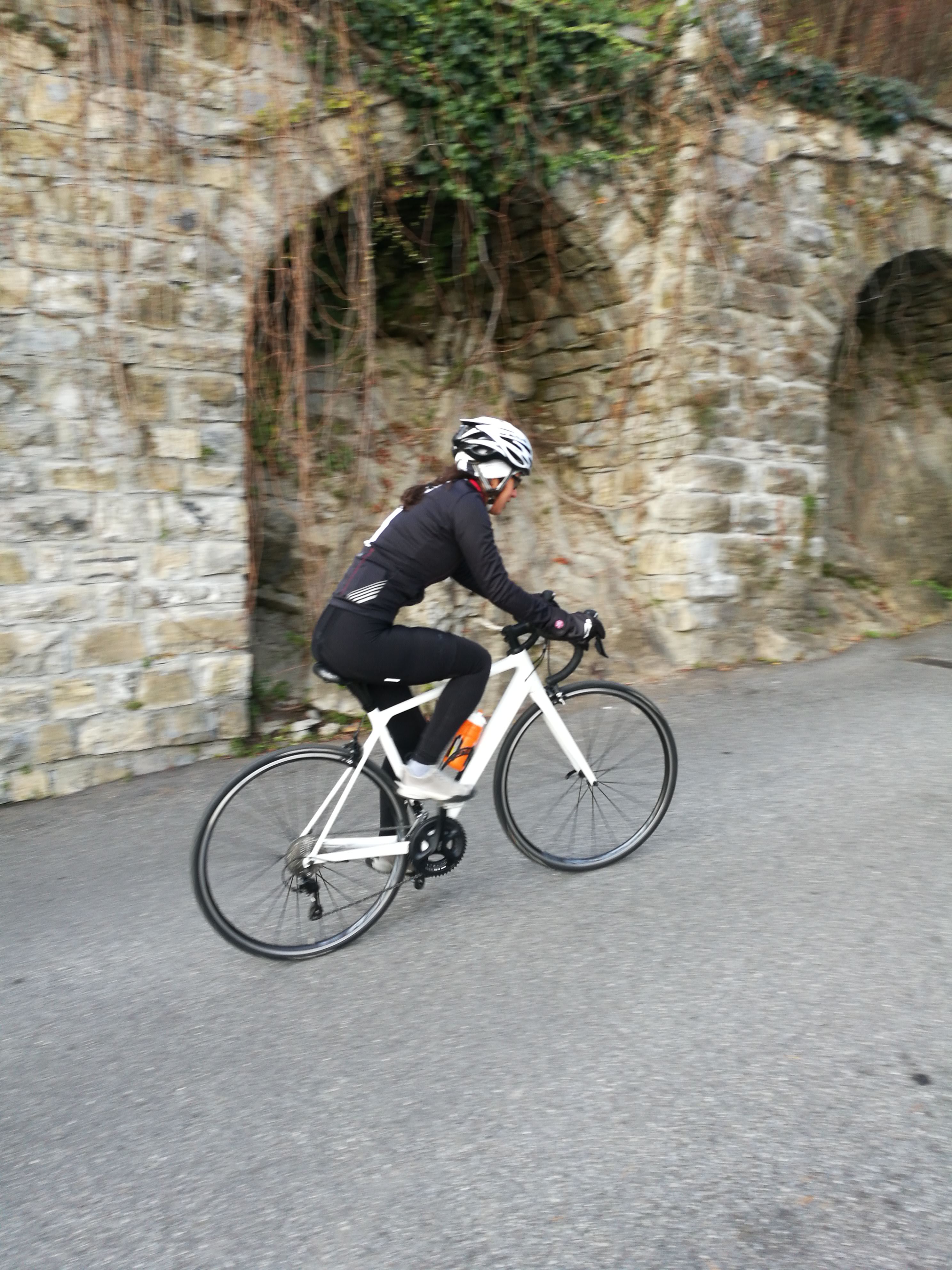 Visto che portandola in mtb sulla mitica dorsale del triangolo lariano si è lamentata delle difficoltà di guida sullo sterrato, ho pensato di realizzare i sogni natalizi di mia moglie facendole trovare sotto l’albero una bella bici da strada invece del centesimo paio di scarpe (risultato ovviamente non garantito).