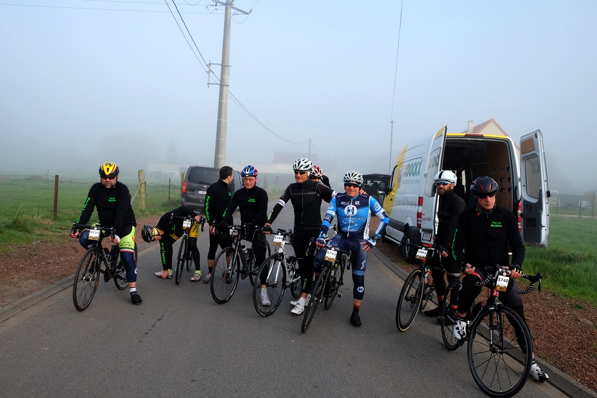 La Parigi Roubaix per amatori parte con lo svantaggio tutt’altro che trascurabile dell’avere partenza ed arrivo a 170 km di distanza, con tutti i problemi logistici che ne derivano; ci sarebbe l’opzione scegliere il percorso da 140 km, che parte da Roubaix, torna indietro qualche km e si immette sul percorso originale ad Aremberg, saltando quindi i primi 10 settori, ma la RBX deve essere sofferenza anche in questo.