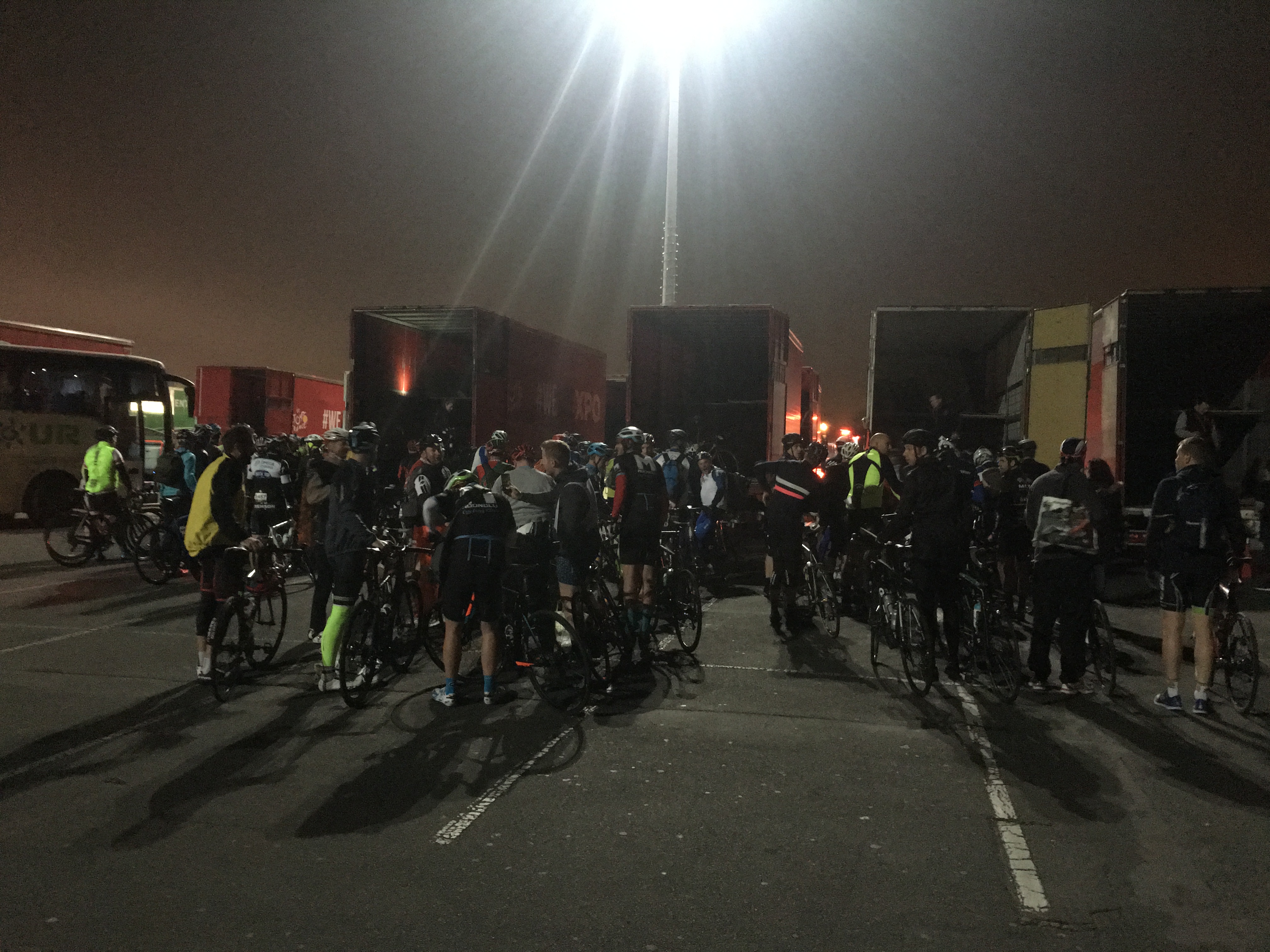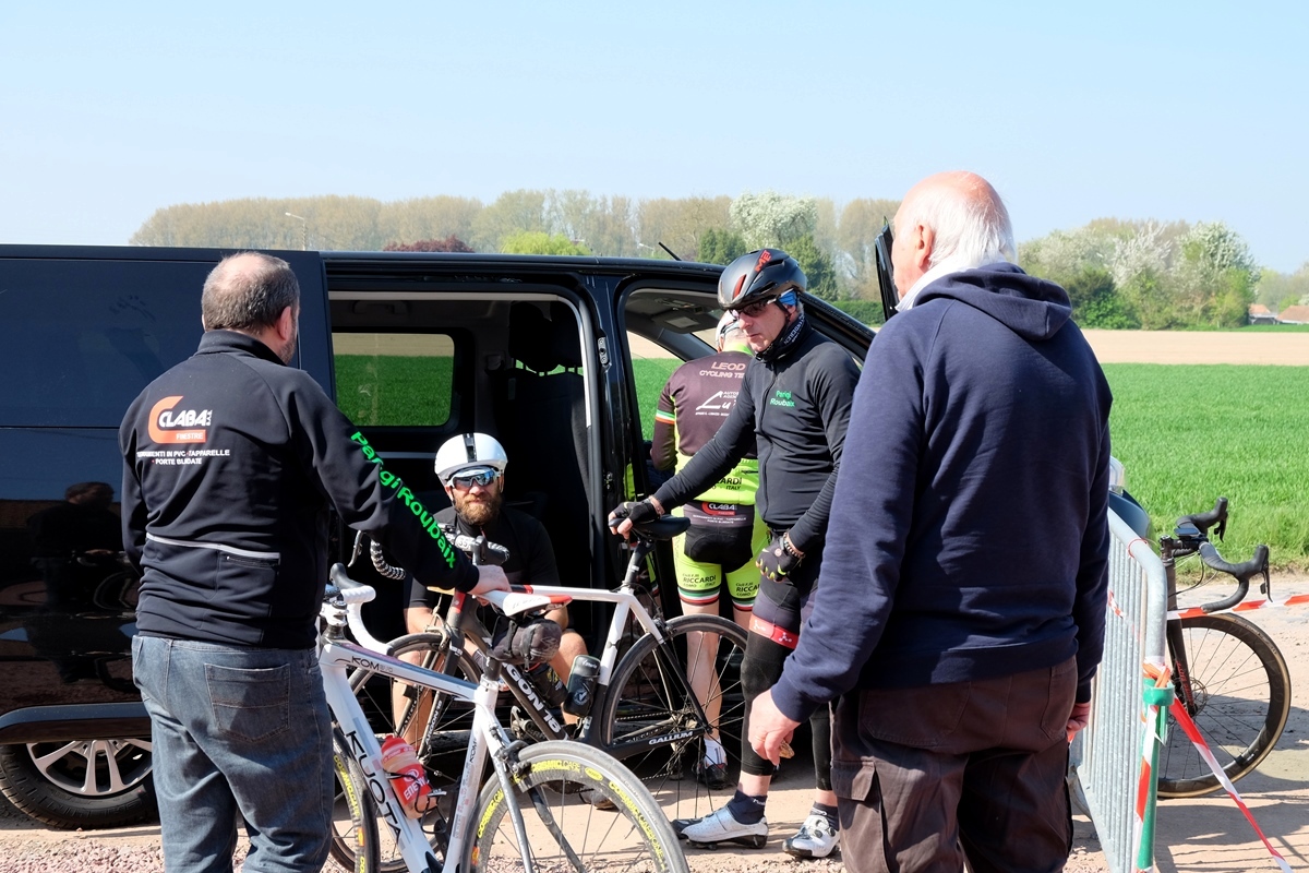 Ci si presenta alle 5 di mattina nel parcheggio di un Leroy Merlin qualsiasi, prendendo parte a quello che è il più grande spot possibile per il ciclismo. Cinquemila appassionati, che 12 ore prima guidavano camion, scaricavano bancali, dirigevano CDA, hanno messo la sveglia un’ora prima e sono in un parcheggio, con 4 gradi e l’abbigliamento di chi sa che ne arriveranno poco meno di 20, a caricare le loro bici sulle decine di camion che con un’impeccabile ordine ne stanno organizzando il trasporto da Roubaix alla partenza di Busigny. Il viaggio in pullman parla di oltre 2 ore nella nebbia più fitta, con la tragicommedia dell’autista che tenta di tenere pulito il vetro con un fazzoletto inutilizzabile già dopo pochi metri.