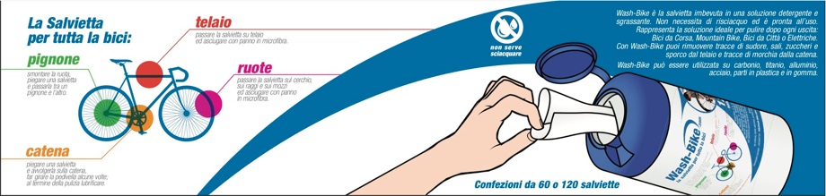 Se non hai un garage o un giardino dove usare l’acqua con disinvoltura, se vai alla casa di campagna e non vuoi portarti dietro tutto l’armamentario per la pulizia (saponi, spazzole, spugne, canna), se sei in vacanza in albergo, se vuoi dare una ripulita veloce alla bici prima di ricaricarla in macchina per tornare a casa, se vuoi dare un’ultima ripulita alla bici prima di una gran fondo dopo la sgambata del sabato pomeriggio, se non hai un garage e sei costretto a tenere la bici in casa (e magari tua moglie mugugna se spargi acqua e sgrassanti per casa o chiede, se proprio devi tenere la bici in salotto, che almeno sia pulita), se d’inverno non hai voglia di scendere in giardino al freddo per pulire la bici oppure se vuoi dare solo una pulitina veloce alla bici, Wash Bike è un’ottima soluzione; basta una passata della salviettina, senza neppure risciacquo o ripassaggio con un panno pulito (che comunque io consiglio di fare almeno su cerchi e freni) e la bici già cambia faccia.