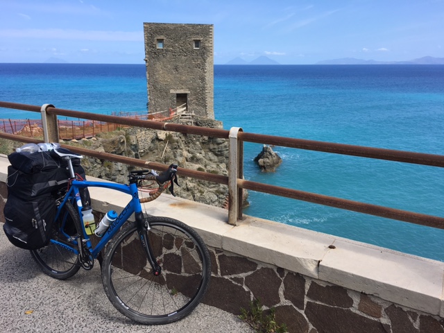Non vedo l’ora di essere sulla SS113 che è la strada che mi accompagnerà da Bagheria fino a Messina dove poi si trasformerà in SS114 fino a Catania. Da li vedrò le Eolie e più in là finalmente la Calabria. Ho deciso di dormire rispettando il più possibile lo spirito di questo viaggio e per questo ho prenotato B&B e ostelli low cost ad ogni tappa (ho voluto evitare la tenda essendo solo). Speriamo che la bici (una ciclocross costruita su misura) non abbia preso botte durante il volo, la monto nella mia stanzetta nel centro di Palermo ed è tutto ok … o quasi, ma non posso preoccuparmene ora, il forcellino posteriore lo sistemerò non appena troverò un officina, mi accerto solo che l’essenziale funzioni.