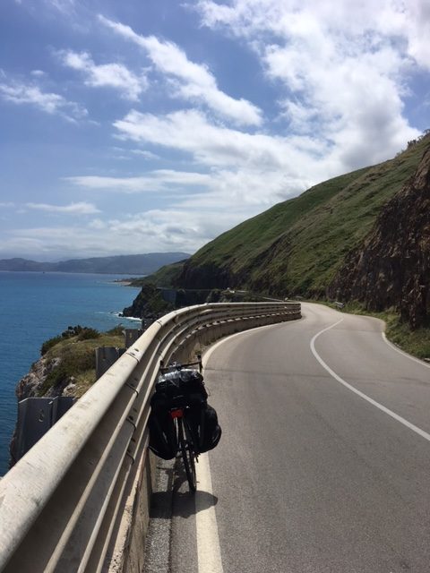 La mattina successiva decido di non fare colazione nel mio alloggio ma di iniziare la giornata con un ottimo cannolo siciliano nella pasticceria centrale di Cefalù, ottima decisione visto che davanti a me ho 80 km fino a Capo d’Orlando. Il percorso fino a Capo D. e’ mozzafiato, infatti i ciclisti del posto che incontro (qui la comunità ciclistica è molto forte) mi raccomandano di godermi ogni singolo km e così faccio. Capo d’Orlando è stato il primo posto in cui ho fatto un punto della situazione, il posto in cui ho potuto rendermi conto che stavo riuscendo nel mio viaggio, che era appena iniziato, ma mi stava portando molto più lontano di dove realmente stessi andando.