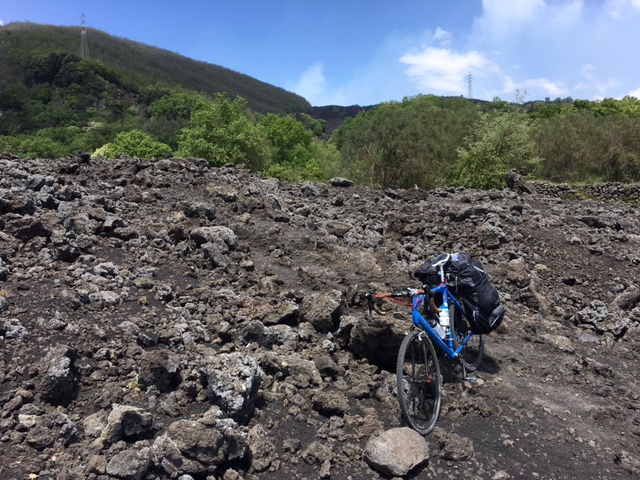 Il Giro d’Italia sarebbe passato da quelle parti la settimana successiva nella tappa Cefalù-Etna. Mi sentivo un po’ come uno di quegli addetti ai lavori che fanno le ricognizioni prima del passaggio dei Campioni. Ho sofferto e ho sofferto tanto, la lenta e dura salita è iniziata 35 km prima, si perché sono partito dal mare …dal punto zero. La pendenza si è fatta sentire da Zafferana Etnea ma una volta arrivato li, davanti a me terra e mare, così tanta terra e cosi tanto mare da non capire dove inizia uno e finisce l’altra, ho capito quanto ne sia valsa la pena.