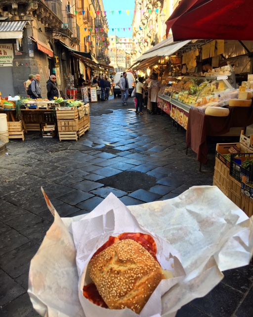 Il caso vuole che oggi ci sia il festival dello street food Siciliano, è quindi mio dovere dover testare le prelibatezze del luogo! Facendo un giro tra le bancarelle trovo una specialità del nord della Sicilia (che conosco bene avendo origini siciliane). Sono le STIGGHIOLE , trattasi di involtini di interiora di agnello cotte alla brace, non per tutti gli stomaci ma vi assicuro: FANTASTICHE! Da provare almeno una volta.